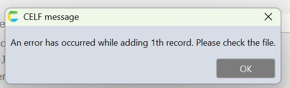 An error has occurred while adding 1th record. Please check the file.