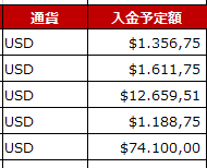 書式設定:通貨、小数点以下 2 桁、通貨記号:USD