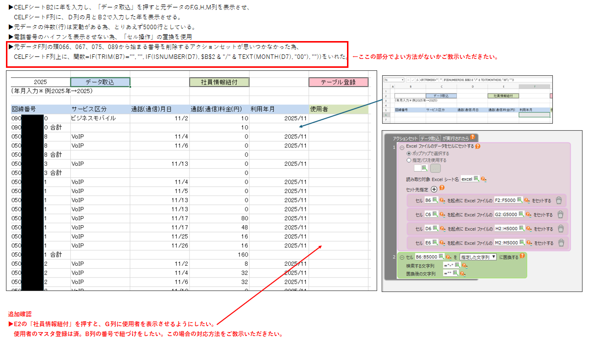 今までマクロを使用してやっていた作業をCELFに移行しようと検証中です。